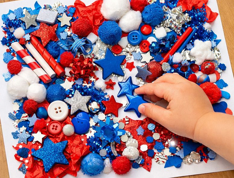 10. Red, White, and Blue Sensory Collage