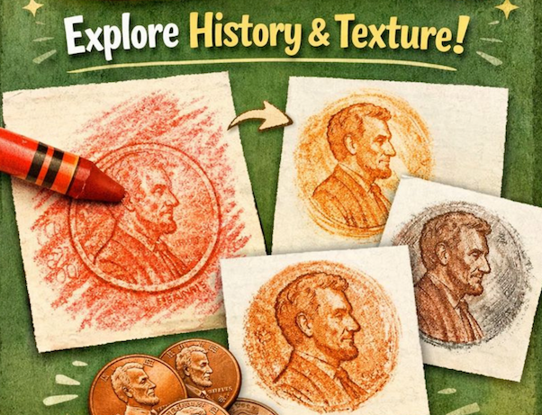Penny rubbings are a simple way to introduce kids to President Lincoln while exploring textures. This low-prep activity works especially well for younger children and classrooms.