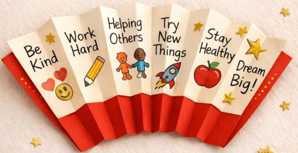 Learning connection: Encourage conversations about kindness, goals, and positive actions.