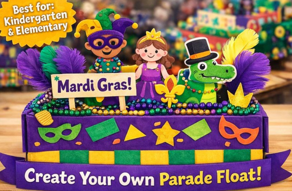 This parade float craft gives kids the opportunity to design their own Mardi Gras float using imagination and storytelling. It encourages planning, creative thinking, and discussion about how parades bring communities together.
