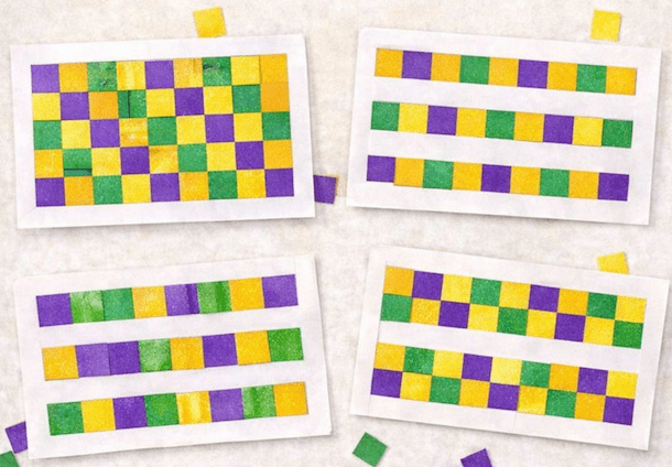 - Encourage color patterns using Mardi Gras colors.