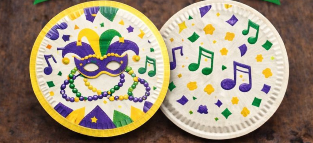 This interactive music craft allows kids to explore rhythm and sound using simple materials. It’s a great way to introduce basic musical concepts while connecting movement and listening skills to Mardi Gras celebrations.