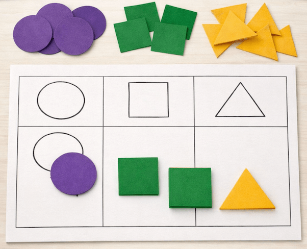 This easy Mardi Gras shape sorting activity helps children practice identifying and categorizing basic shapes while using traditional Mardi Gras colors. It works especially well as a quiet classroom center and supports early math skills through hands-on learning.