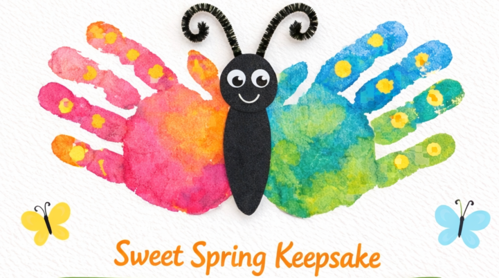 This sweet handprint butterfly makes a beautiful spring keepsake. It’s simple, colorful, and perfect for saving year after year.