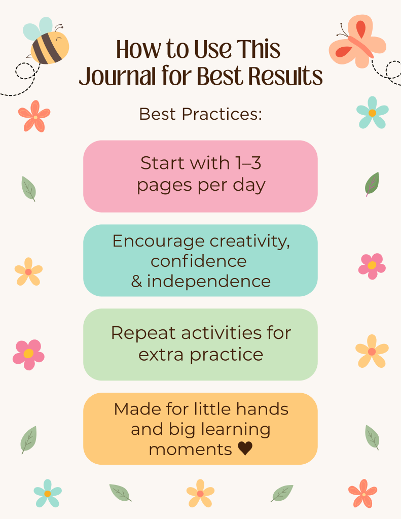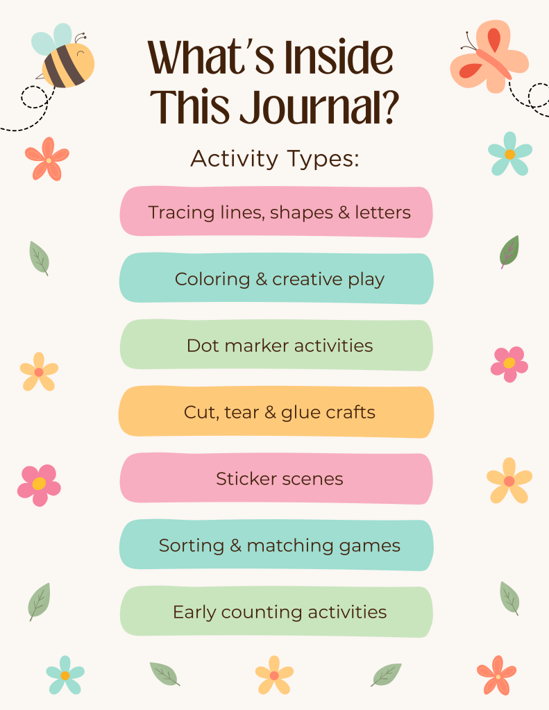 Looking for simple, screen-free ways to keep your little one learning and engaged this spring? Our Spring Learning Journal is filled with 50+ playful, hands-on activities designed for kids ages 2–5. From tracing and coloring to early math and matching, it’s an easy, no-prep way to build essential skills while having fun at home.