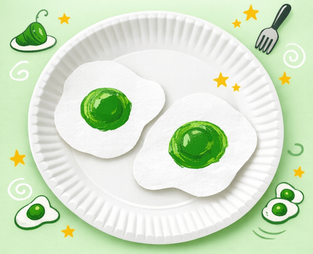 Inspired by Green Eggs and Ham. A silly food-themed craft that encourages imaginative play and conversation.